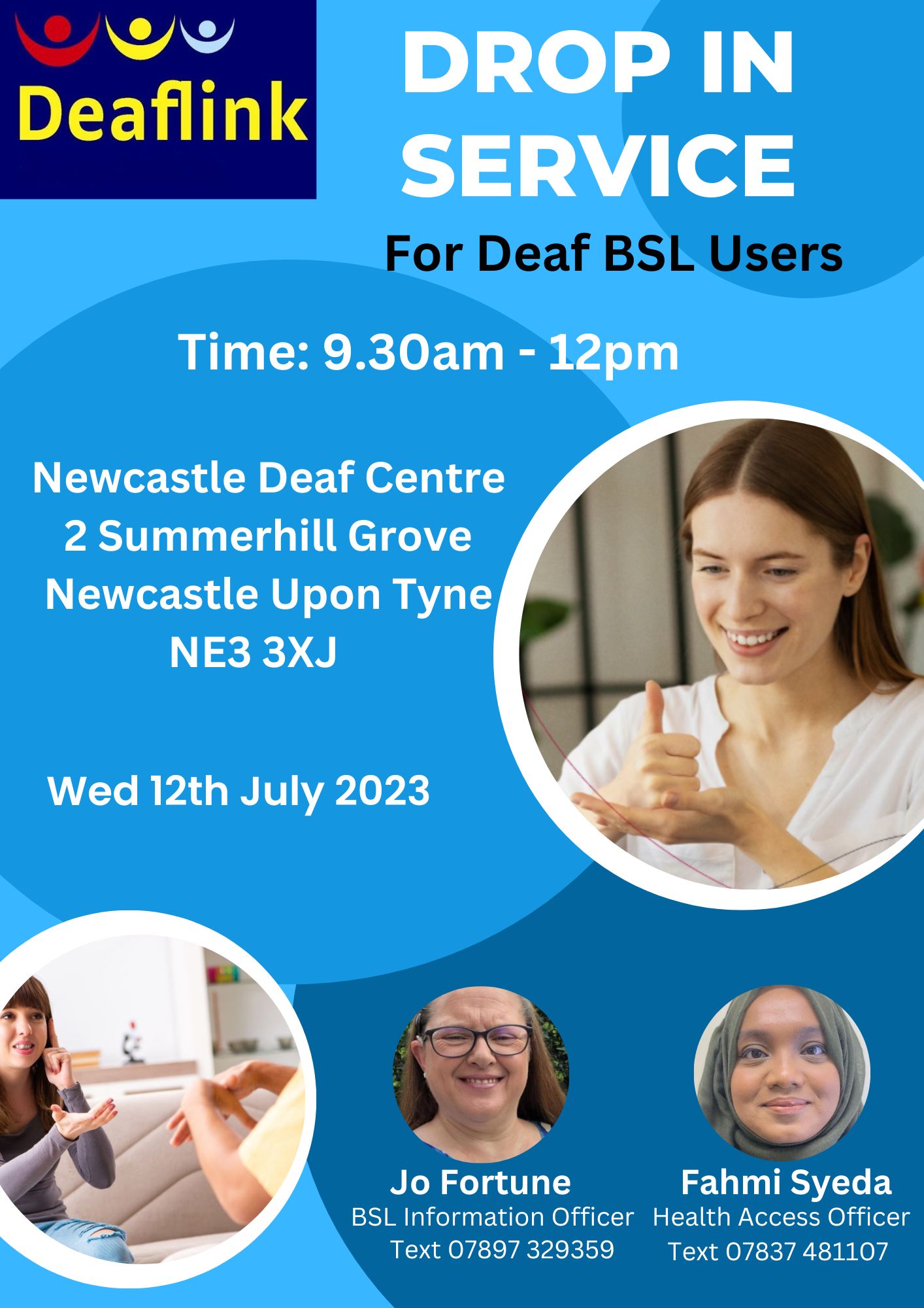 12 Jul Drop in Service 12 Jul 2023 at 8:30am This event has passed. Newcastle Deaf Centre 2 Summerhill Grove Newcastle Upon Tyne NE3 3XJ More information for Drop in Service