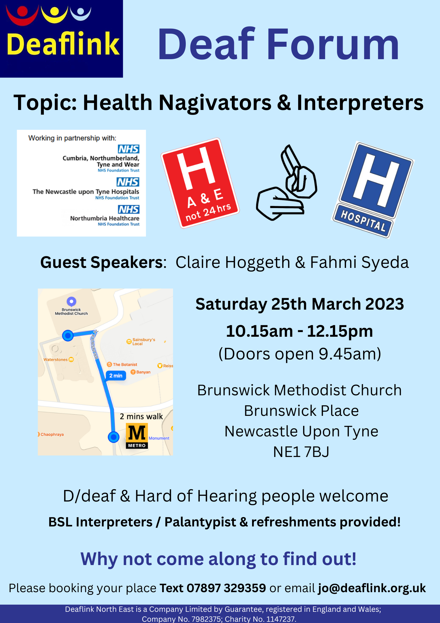 25 Mar Deaf Forum 25 Mar 2023 at 10:30am This event has passed. Brunswick Methodist Church Brunswick Place Newcastle Upon Tyne NE1 7BJ More information for Deaf Forum